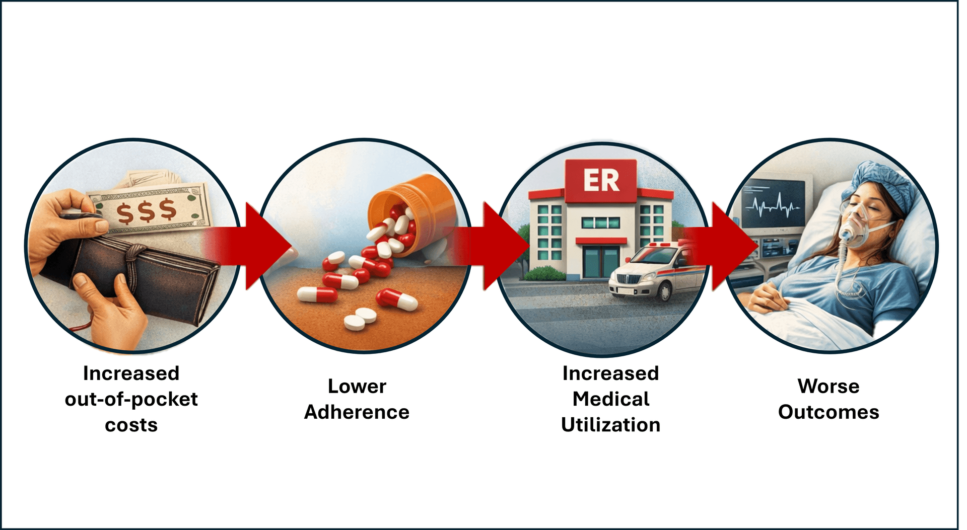 It may be worth examining whether benefit design itself is contributing to that utilization. When high-value chronic therapies are exposed to abrupt or unpredictable cost sharing, reduced adherence should not be surprising. In that context, some portion of downstream utilization may not be a failure of patient behavior, but rather a predictable response to OOP financial exposure.